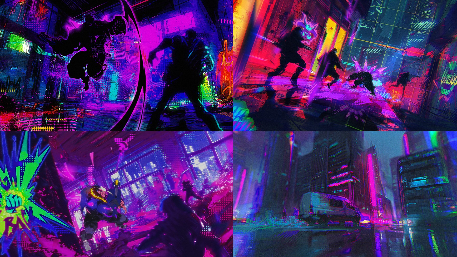 Very early in the process - before we really had any story details locked down - I started laying out some rough concept art based on the work in progress script that was being developed. I had a few key images of Hazard poses from internal Blizzard concept artists - but I wanted to start exploring what the vibe could start to feel like. At this point - it wasn't known as to what the environment was going to look like so I played with a typical cyberpunk city. In production we were guided to using Oasis labs as the backdrop for our environment.
