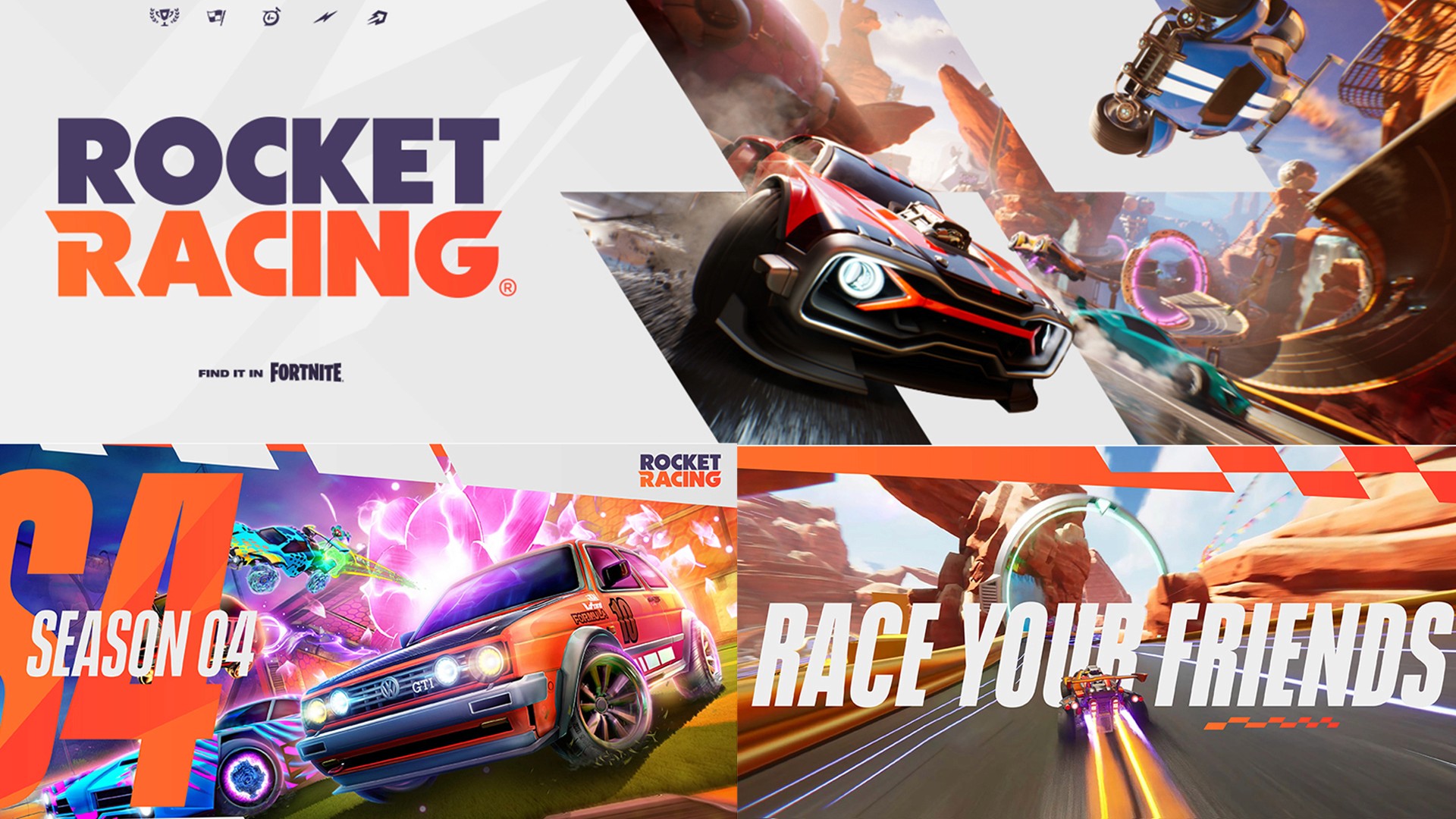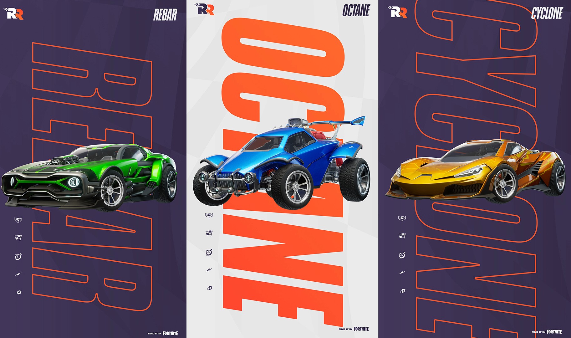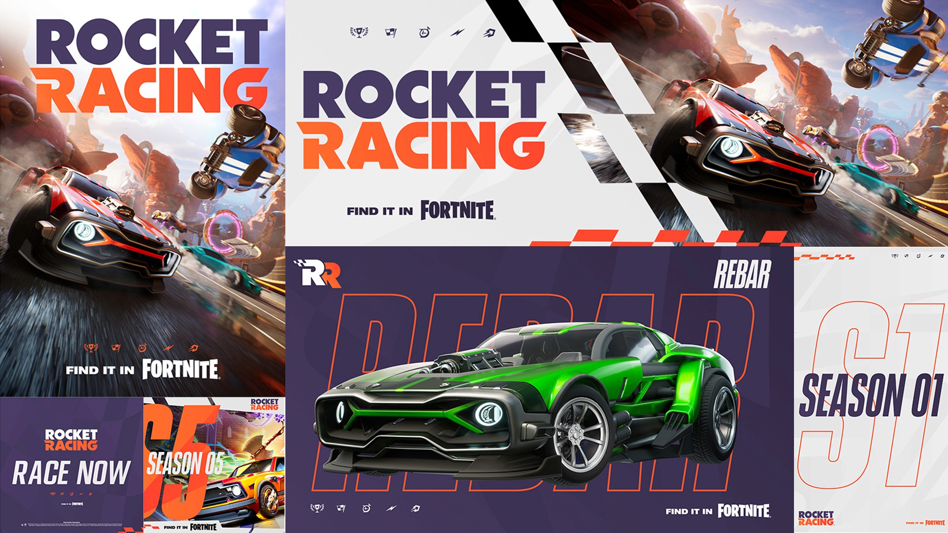 Working with talented brand designer J. Colins - we worked through numerous design iterations for the brand mark and logo for Rocket Racing. Since this IP was directly tied to another similar IP - Rocket League - there was a lot of discussion how different it should be. In the end, we worked closely with Epic to develop a logo that stands on its own but still fits in with the overall Rocket League/Fortnite world it existis within.