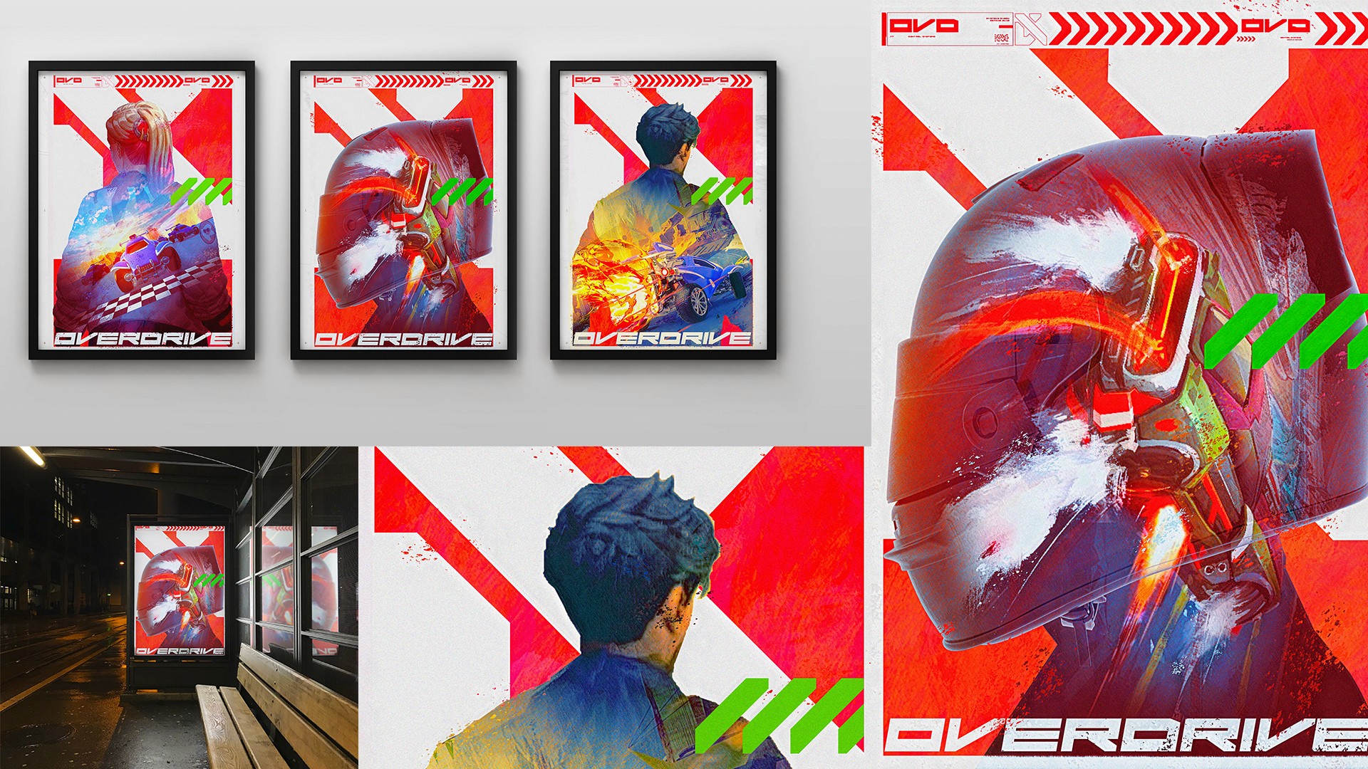 Early in the iteration process - the offical name was still in development - so we used a made up name - Redline and Overdrive to kick off the design phase. We had a lot of fun designing posters and general design to present to client to help inspire the continued development of the game.